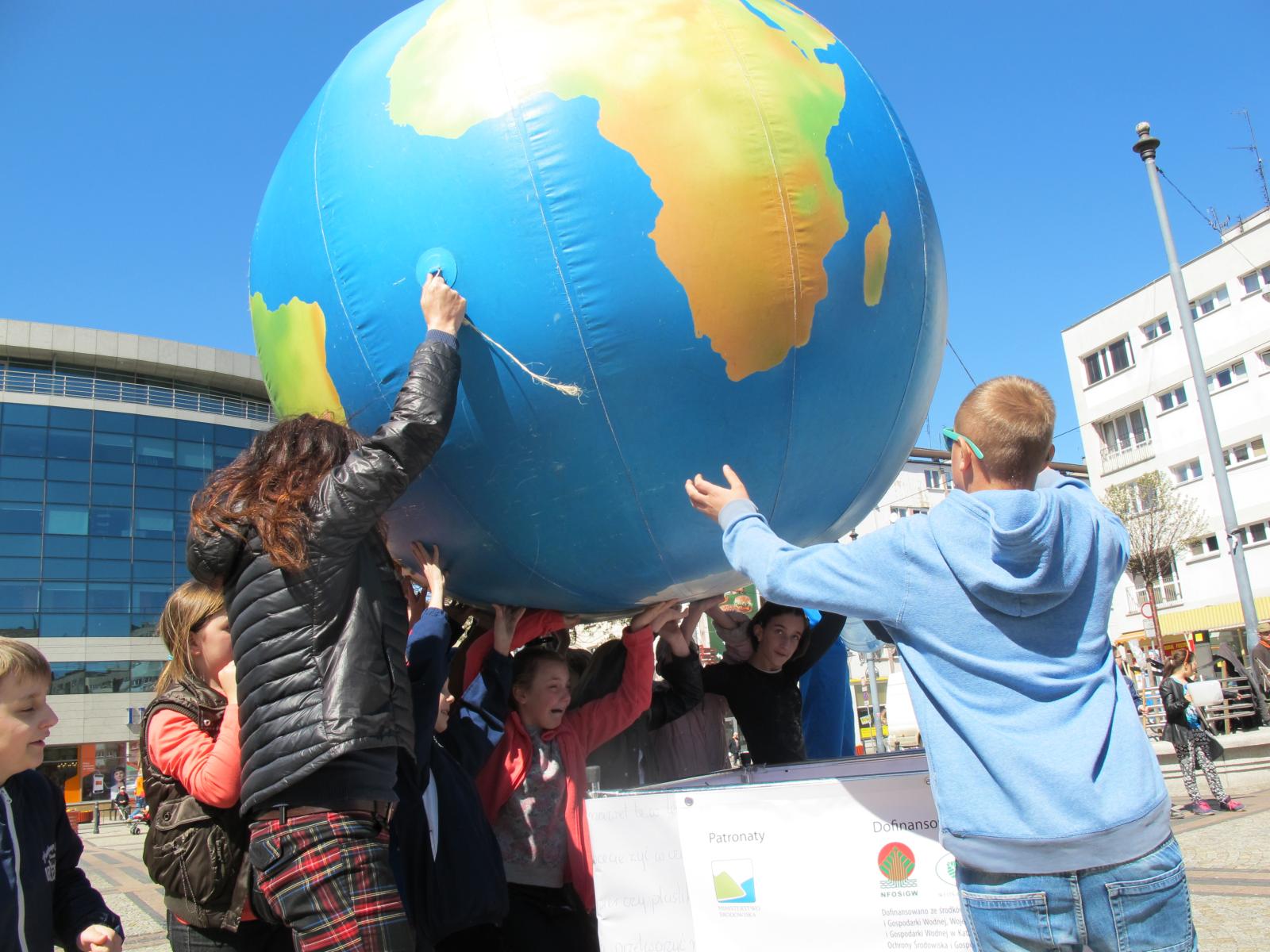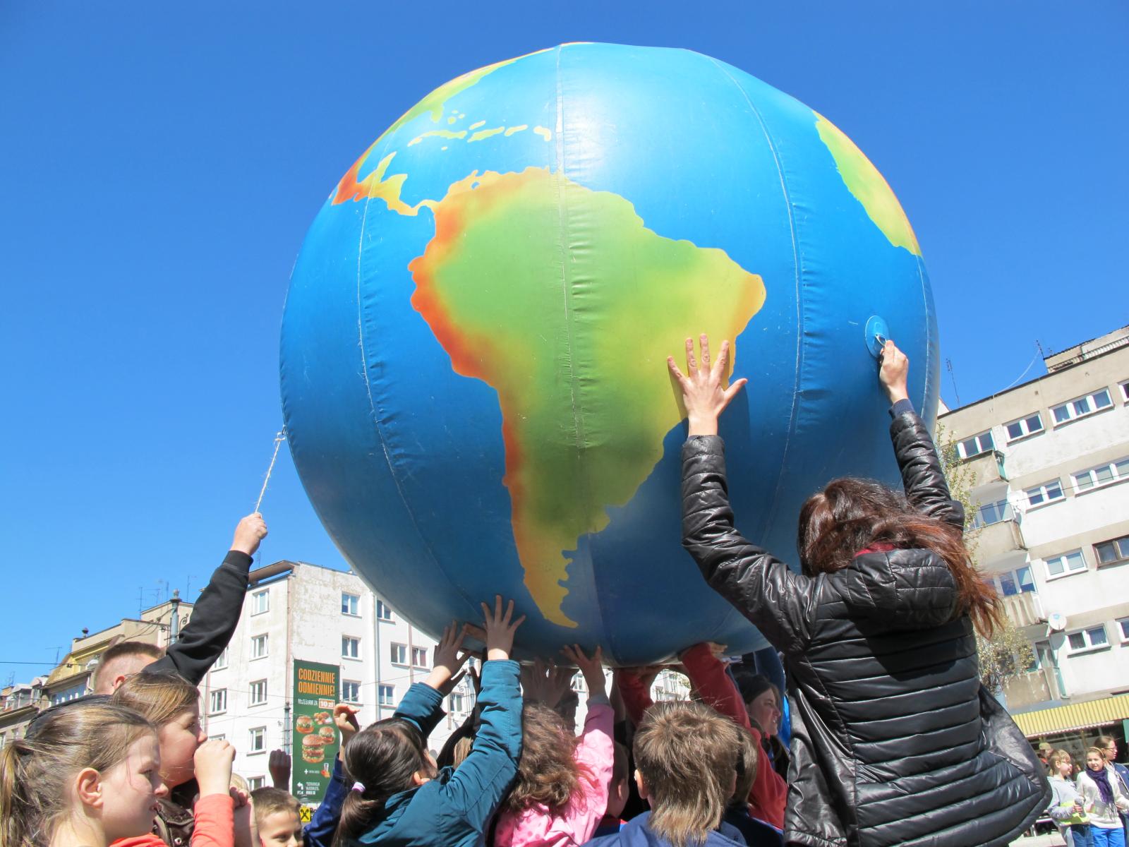Jedną z wielu atrakcji przygotowanych dla Was na Pikniku ekologicznym - Zielona Pobudka jest zabawa polegająca na utrzymaniu makiety kuli ziemskiej na rękach i jej ochrona przed upadkiem.