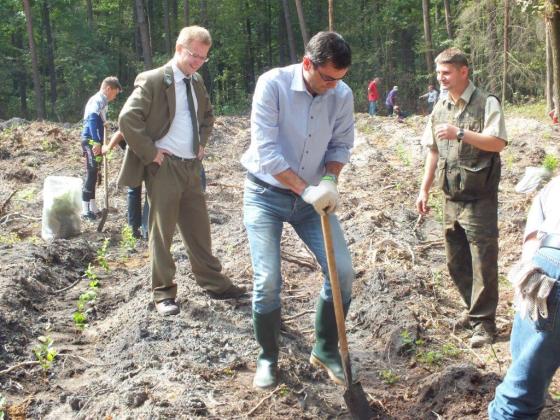 Elementem akcji było sadzenie nowego lasu w miejsce niedawno wyciętego. Drewno ze starych drzew posłużyło do budowy domów a w ich miejscu leśnicy rozpoczęli dłuuuugą hodowlę nowego lasu. Trzeba pamiętać, że aby osiągnąć dojrzały las wymaga to cierpliwości i ogromnego nakładu pracy. Co najmniej cztery pokolenia leśników muszą chronić posadzone drzewa i dbać o nie, by po 110 latach osiągnąć dorodny drzewostan. W przypadku buka, którego sadziliśmy jeszcze dłużej – 120 lat